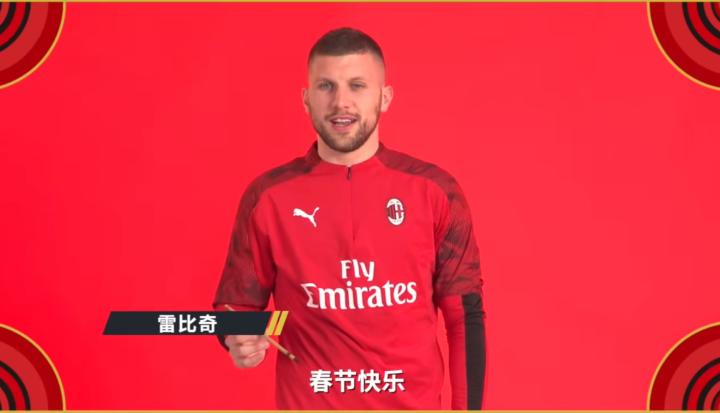 突如其来的疫情席卷全球,从中国到意大利,事态越发严峻。时值新春,但中国人民同心抗疫,响应政策呆在家中。在这个悲痛的时期,中国的罗森内里收到了来自心爱俱乐部的新年礼物——AC米兰俱乐部为中国新年录制了视频,视频中的球员们身穿新春元素的衣服,举着对联、“福”字、灯笼,用引人发笑的汉语为中国的罗森内里们送来新春祝福。而出现在视频中的雷比奇手持毛笔,有模有样地写下一个“福”字,用磁性的声音标准地送来祝福:“春节快乐”。平日里赛场上冷峻的脸上带着笑容,活像一头憨态可掬的老虎。