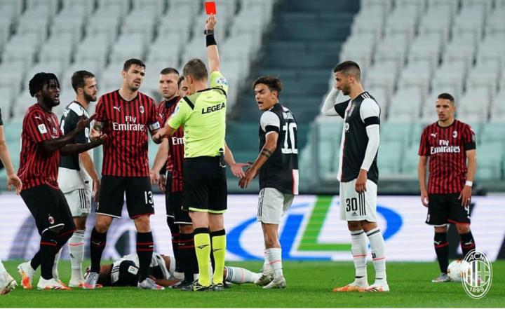 随着疫情在意大利的肆虐,意甲联赛宣布停摆,随后就是三个多月的等待。奋战在一线的医生、护士和志愿者,配合工作共同抗议的民众,维持社会秩序的各行各业的工作者……终于,在大家同心戮力的努力下,全球抗疫取得了初步成功,足球也慢慢回到人们生活中。2020.6.13的都灵安联球场,尤文图斯主场迎战AC米兰。这场意大利杯半决赛的次回合是意甲球队时隔3个多月后迎来的第一场正式比赛。球迷们都希望球队能有一个好的表现,不负他们长久的期待。然而在上半场一次进攻中,停摆前的比赛中发挥神勇的雷比奇却因为抬脚过高被裁判直接红牌罚下。最终,少一人作战的米兰客场战平尤文,以客场进球的劣势被淘汰。复赛后的第一场比赛就吃到红牌,间接导致球队被淘汰,这样的结果无疑是雷比奇还是球迷都难以平静接受。