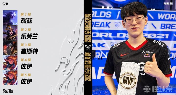 Edward Gaming 的中路选手李汭燦 “Scout” 在对阵 DWG KIA 的五局比赛中使用了四名不同英雄,凭借出色的表现荣获 2021 全球总决赛冠亚军决赛 OPPO MVP奖。