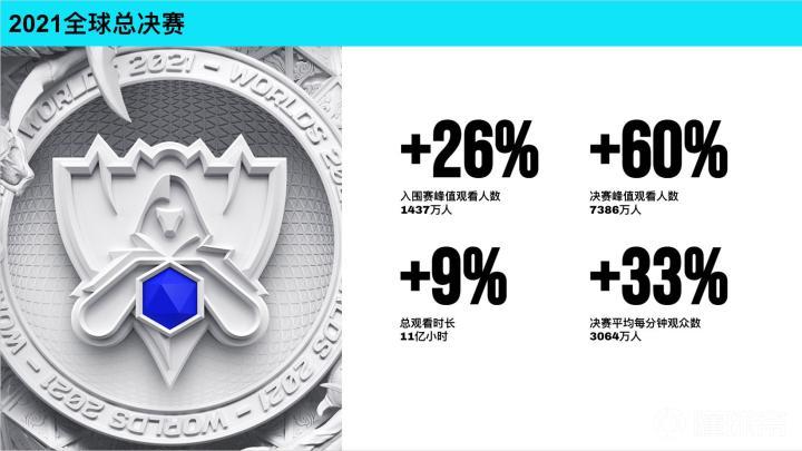 我们与合作伙伴 StreamHatchet 共同收集了来自全世界的数据,经过验证和标准化处理,我们非常激动地宣布,全球总决赛冠亚军决赛赛的平均每分钟观众数(AMA)达到 30,604,255 人,与 2020 年相比增长 32.82%(当年的数据也是历史新高);峰值同时观看人数(PCU)达到 73,860,742 人,与 2020 年相比增长 60.33%;冠亚军决赛的总观看时长达到 232,638,870 小时。 2021 全球总决赛的总观看时长达到 1,084,991,999 小时。没有你们的支持,我们无法达成此番成就——谢谢大家。