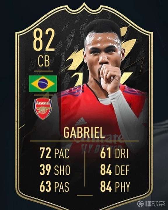 阿森纳后卫,巴西球员加布里埃尔凭借近期优异的表现...北伦敦小酒馆 @懂球帝2021-12-18 08:22阿森纳后卫,巴西球员加布里埃尔凭借近期优异的表现,入选足球游戏FIFA22的周最佳球员卡!在周黑卡中他的能力值达到了82展开更多