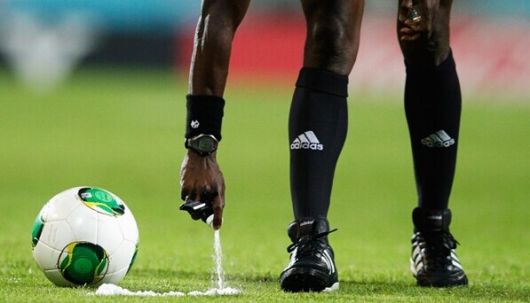 本届世界杯,参与比赛执法的主裁判们将会拥有一个新装备,那就是便携式喷雾器。这种喷雾器在使用时可以在草地上喷出一条白线(喷雾会在一分钟左右自然消失),主裁判们将会利用它来确定比赛中任意球的主罚位置以及人墙的距离。日前在接受采访时,著名裁判韦伯(Howard Webb)表示,此项技术的运用可以为本届世界杯带来更多的任意球进球。