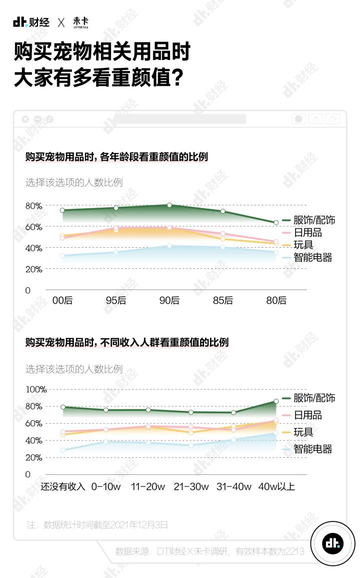 相比之下,在购买宠物相关用品时,不管是服饰/配饰、日用品、玩具还是智能电器,90后都比其他年龄段更看重颜值。