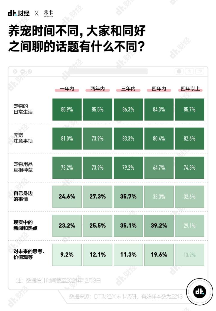 但我们也发现,养宠时间越长的宠物主,和同好之间交流的话题会越来越广,也因此越容易和同好之间成为挚友。