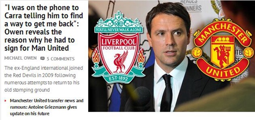 2009年夏天,正在考虑未来去向的欧文,首先想到了老东家——利物浦。他特地给老队友卡拉格打了电话,而卡拉格在询问了俱乐部与时任主教练贝尼特斯后却不得不告诉他,
