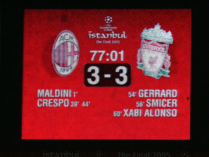 第60分钟是整场比赛的最高潮时刻,杰拉德造点,阿隆索主罚的点球被扑出,随后补射破门,利物浦奇迹般地将比分扳成了3-3平,要知道当时中场的时候,许多球迷都认为那年的欧冠冠军已经确定了。在随后的比赛中AC米兰疯狂进攻,但利物浦门将杜德克如有神助,连续做出了多次精彩扑救,把舍甫琴科都扑的快要自闭了。