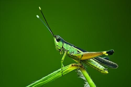 说到草蜢(英文:grasshopper),他还有个更为常见的名字,蚱蜢。即蝗亚目(学名:Caelifera)昆虫的通称,在中国北方也称蛨(蚂)蚱,古称虴蛨。是蝗虫和螽斯共有的俗称,但一般来说多指蝗虫。在生物学分类上,“蚱蜢”一词可分指“菱蝗科”和“短角蝗科”的蝗虫;“菱蝗科”又称之为“蚱科”,而“短角蝗科”则又称之为“蜢科”。蝗虫属直翅目锥尾亚目草食性昆虫。