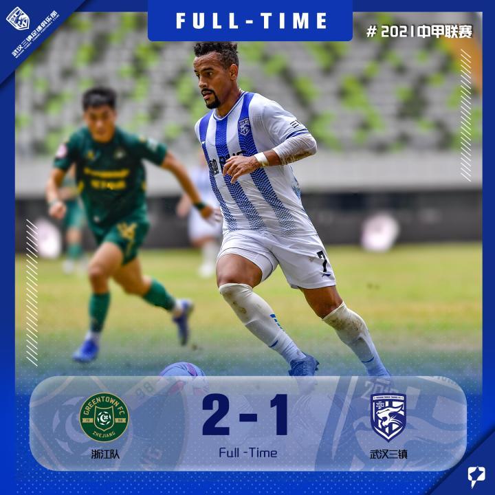 北京时间12月22日15:00,2021中甲联赛(梅州赛区)第四阶段第三十四轮,武汉三镇在五华奥体中心对阵浙江队,最终浙江队2-1武汉三镇。