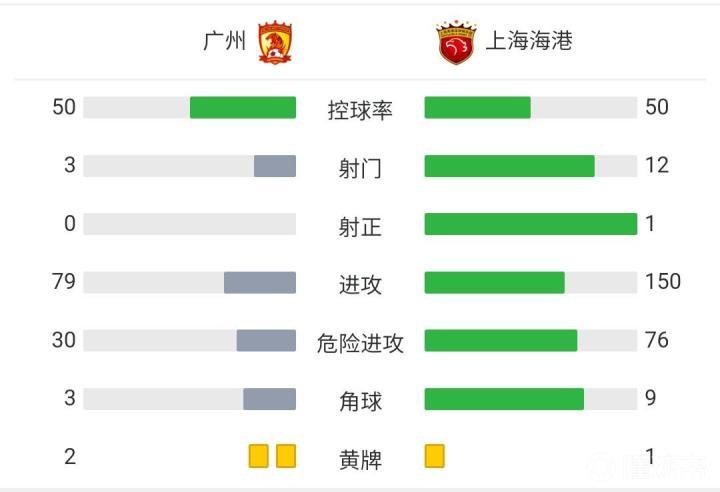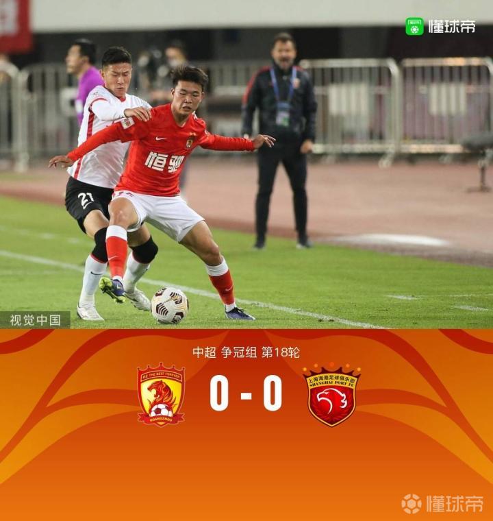 北京时间12月22日20:00,中超争冠组第18轮,广州对阵上海海港,主裁为马力。上半场海港主导进攻,广州稳固防守,双方都没有太好的机会;下半场刘祝润头球稍稍顶高。最终,广州0-0海港。