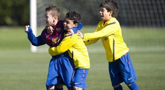 (图)如今的拉玛西亚无论任何年龄段比赛你都可以看到小球员们在中场整体的配合是多么的娴熟
