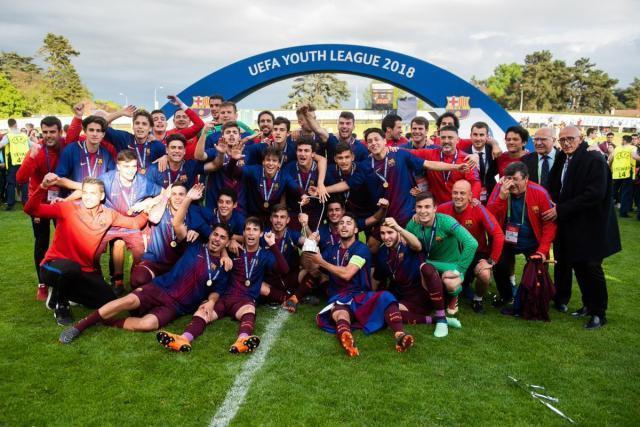 (图)17-18赛季欧青赛巴萨b队夺冠