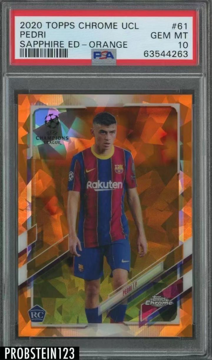 2020 Topps Chrome UCL Soccer Sapphire Orange #61 Pedri RC Rookie /50 PSA 10