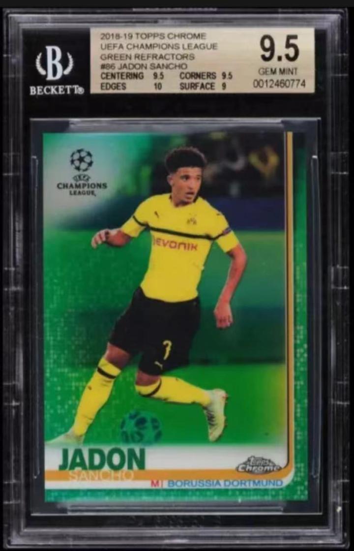 2018-19 Topps Chrome UEFA Soccer #86 Jadon Sancho RC Green Refractor /99 BGS 9.5