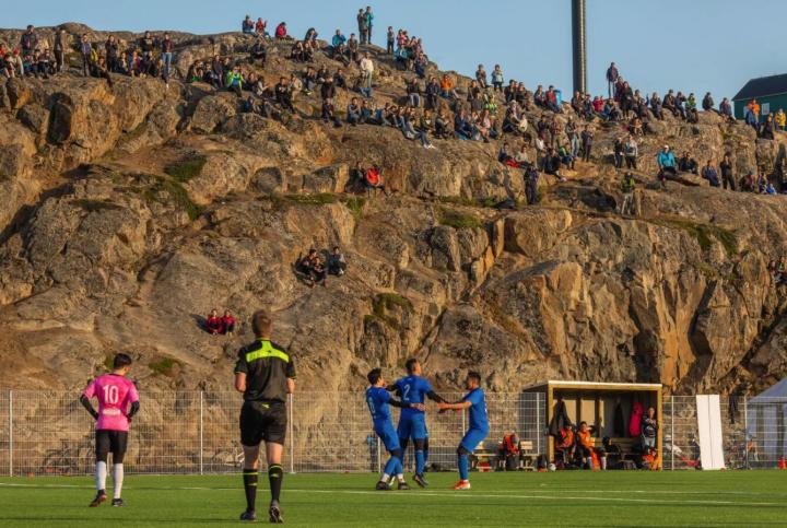 只有到了6~8月份,足球才终于被人们所心心念念起来。也正是在那个时候,一年一度的格陵兰冠军联赛会在一周左右的时间内进行掉,因为相对暖和一点的好天气并不多。
