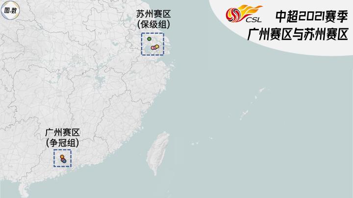 2021赛季中超联赛第二阶段分为两个赛区,一个是广东省的广州赛区,负责争冠组的比赛;另一个是江苏省的苏州赛区,承担保级组的比赛。