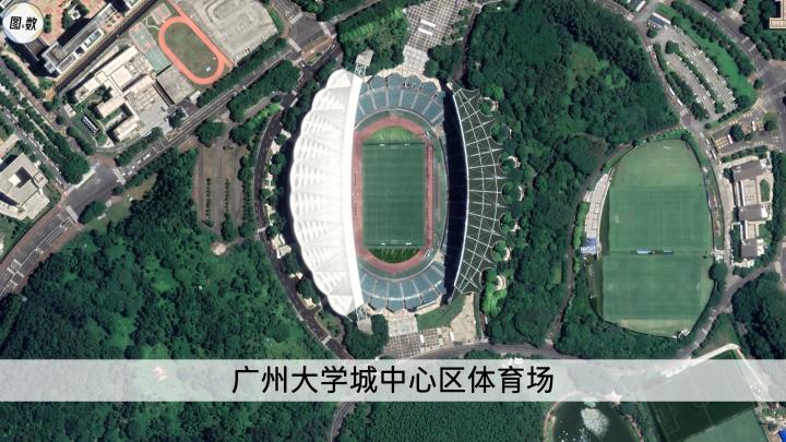 广州大学城中心区体育场位于广州市番禺区小谷围岛上。小谷围岛是珠江中的一个小岛,这个岛的知识密度相当惊人,有十余所大学,仅“双一流大学”就好几所,广东科学中心也在岛上,据说这是世界上最大的科技馆。