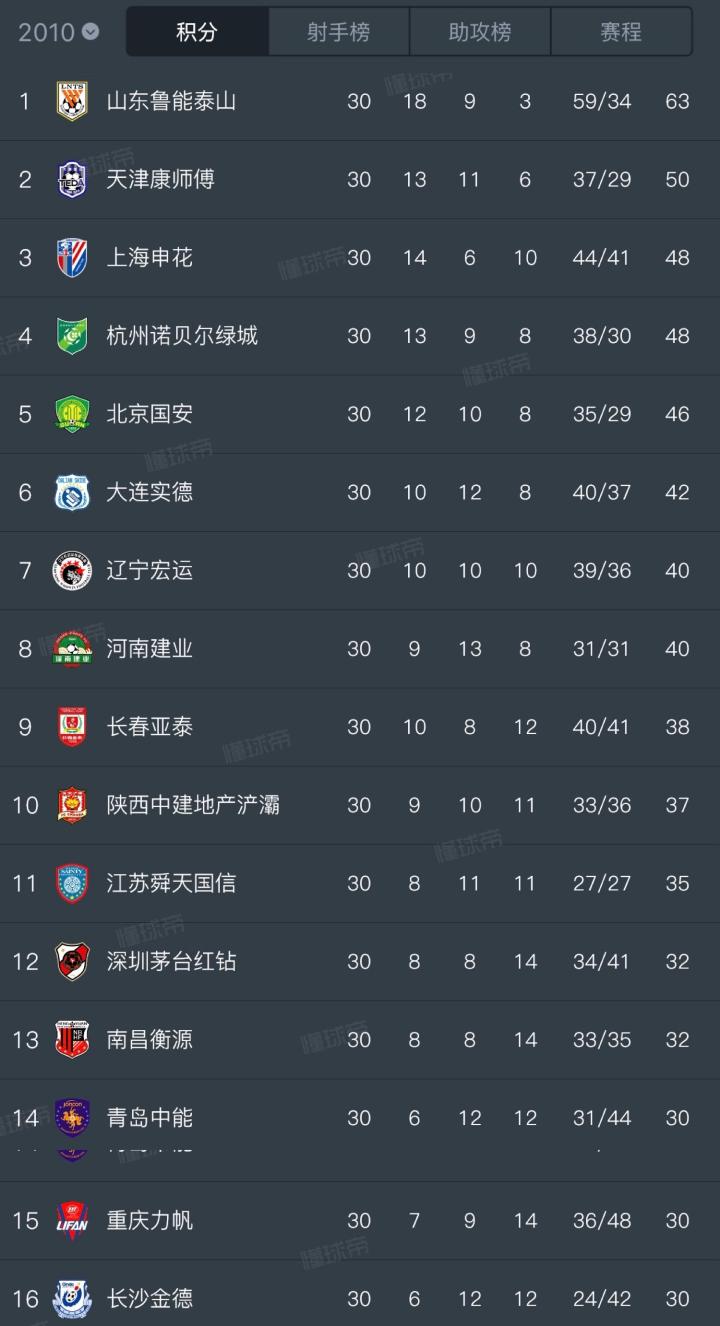 深夜emo图,十一年前的中超积分榜,那些名字好怀念。