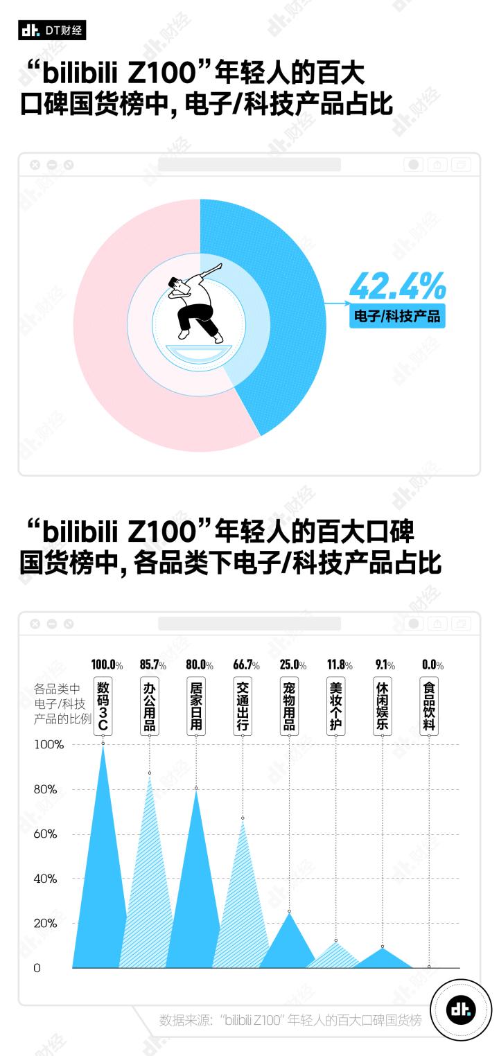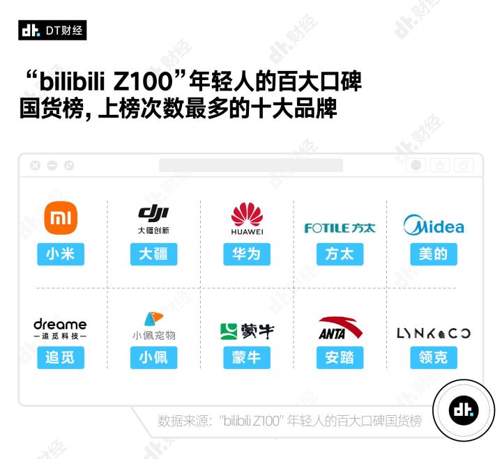 正好,B站在12月29日发布了“bilibili Z100”年轻人的百大口碑国货榜单。这个榜单以B站大数据平台“Z指数”数据为基础,综合了内容热度、用户互动率、弹幕正负评论等维度,以年轻人的真实口碑,评选出与生活息息相关的年度百大国货。