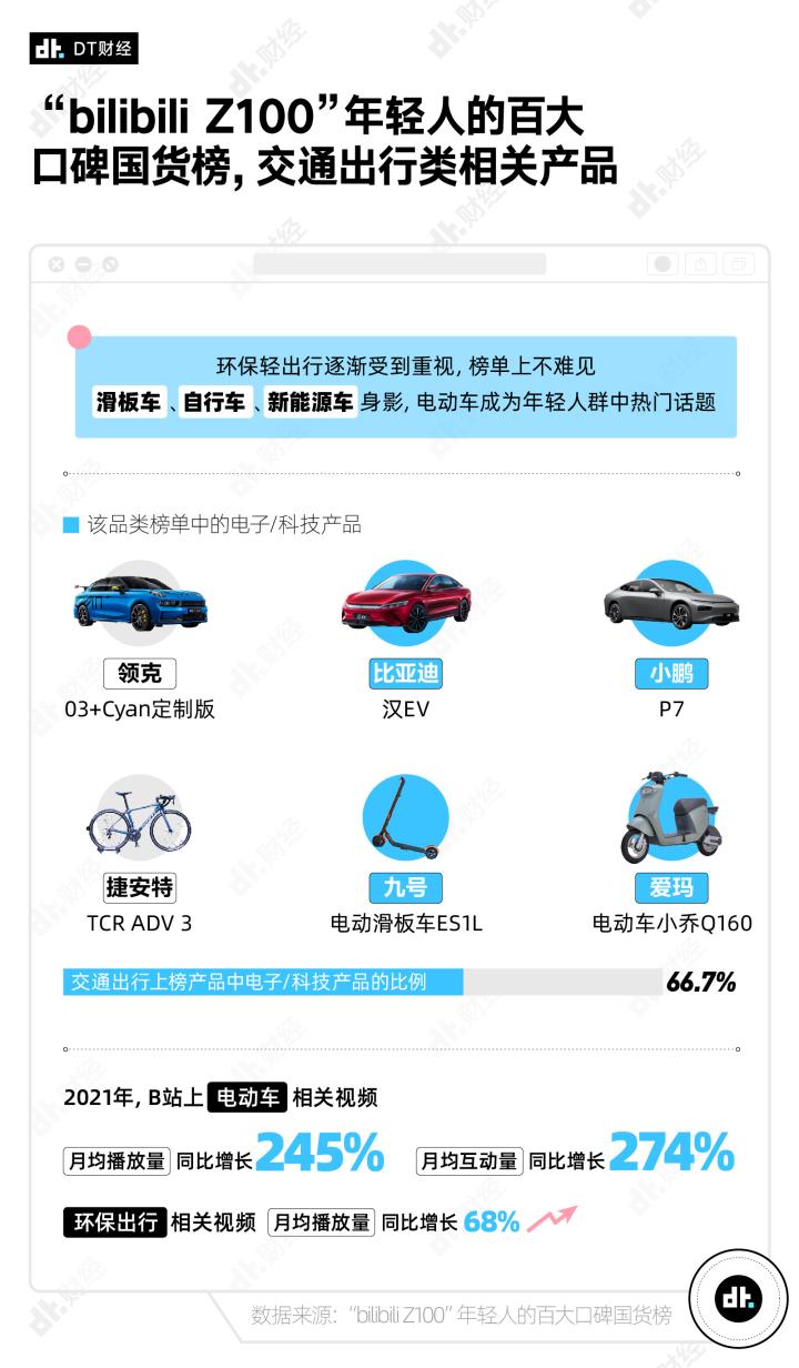 所以,“轻出行”逐渐受到年轻人的重视。在这次的榜单上,我们不难见到滑板车、自行车、新能源车的身影,电动车也成为年轻人群中热门话题。2021年,B站上电动车相关视频月均播放量同比增长245%,月均互动量同比增长274%;环保出行相关视频月均播放量同比增长68%。