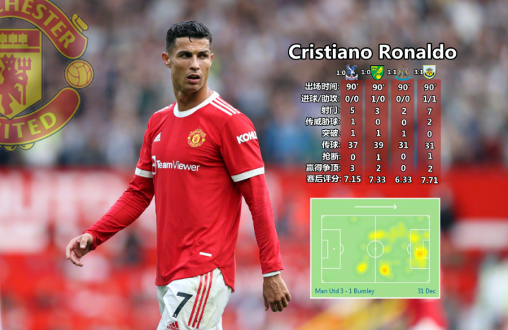 为了解决中场控制能力不足的问题,朗尼克一边要求C罗积极回撤,一边要后卫球员承担起组织任务。在过去四场联赛中,C罗的场均传球数均在35次左右,远超赛季平均水平(27次/场)。此役,C罗打了92分钟,只有31次传球,这说明中场球员完成任务比较出色。马蒂奇的体能只够踢半场好球,麦克托米奈是更为出彩的那位。