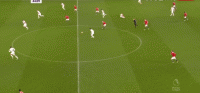 开场阶段,曼联进入状态较慢,桑乔和卢克-肖之间的连接并不顺畅。边卫前提后无法持续制造杀伤,曼联的两闸防区反倒成为伯恩利的进攻策源地。为了改变边路博弈中的被动局面,曼联一方面依靠中后场球员的长传将伯恩利的阵线压回去,一方面利用4222阵型结构灵活的特点,通过强侧边卫攻击肋部、前场球员频繁换位的方式打乱对手的防线。