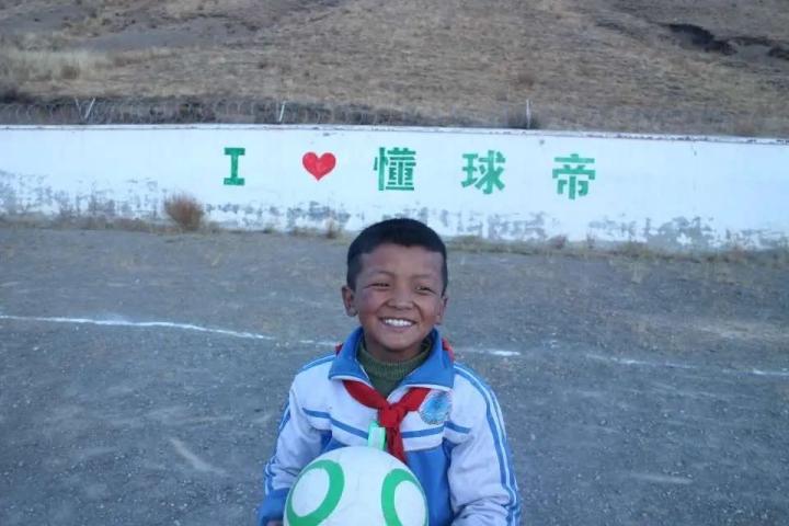 懂球号@西藏_晋美 在海拔4500米的西藏山村教孩子们踢球,孩子们都洋溢着笑容,也看到了我懂送出的甜甜圈公益足球。