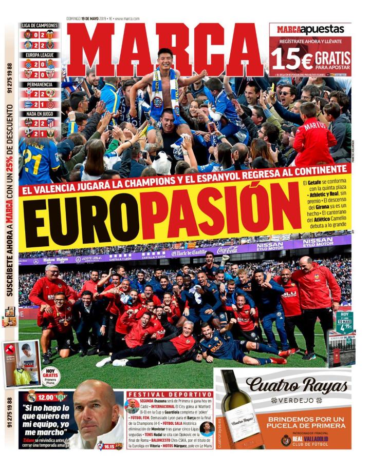 武磊率领西班牙人队闯入欧联附加赛,登上《马卡报》头版