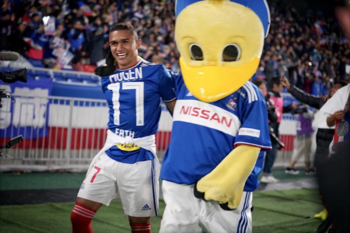 出道于1993年J联赛揭幕战,从此一直战斗在球场内外,球员出场时,Marinos君会站在北看台前的高台上挥舞旗帜,比赛中会坐在场边看球。
