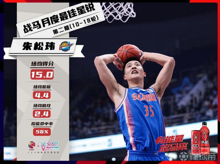篮板上沿的一枚硬币CBA官方发布消息,宣布四川男篮球员朱松玮当选本赛季联赛第二期月度星锐球员。