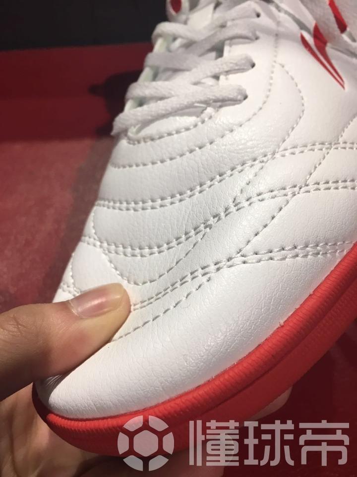 先来说说产品本身。作为一双定价199定位为入门级的TF球鞋,我们可以理解为它是以儿童、青少年,以及那些刚刚接触足球,踢球以低强度为主,且预算不高的人为目标用户群体的。我们也就站在这个角度来对其进行客观地评价。其鞋面采用的超纤仿皮面料,柔软度一般,不偏硬,支撑性一般。采用仿皮质的面料估计主要是为了优化消费者对其的第一印象,不显得太过普通与廉价。整体鞋身采用同种外部面料,只是后半部为了体现层次感复杂化了结构与车线。上脚时鞋面硬度不强,所以还算得上舒适,也不影响对球的控制。但触感与辅助设计就没法强求了。