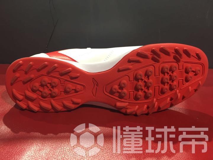 这双鞋最大的槽点就在于它的大底。可以说,李宁用制造100块一双的板鞋的方式制造了这双足球鞋的大底。柔软的外底从中掌到后掌没有任何加强设计,也没有额外的保护性设计。