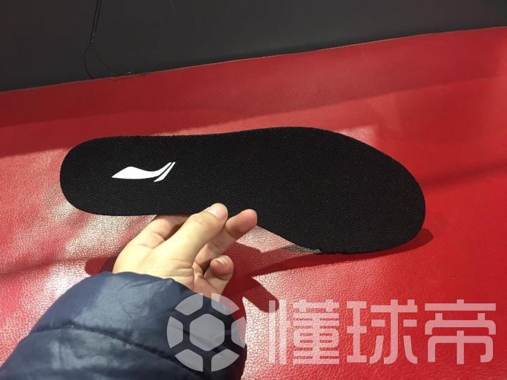 而这双李宁TF的鞋垫,让我想起了很多廉价运动款板鞋所配备的鞋垫,完全没有任何体现针对球鞋的设计,显得太欠缺诚意。鞋垫的后半部分是粘连在鞋底上的,不知是由于对鞋垫的固定效果不自信还是为了遮掩什么。遗憾的是,所用的双面胶质量也不过如此,稍一用力就可以将鞋垫完好无损地撕下,因此我得以一探鞋仓究竟。
