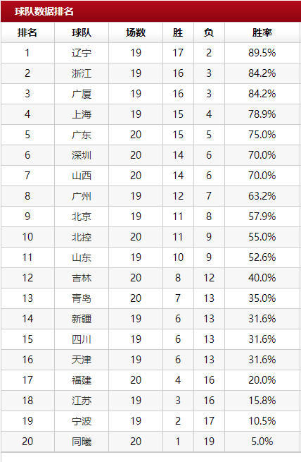 CBA:广东险胜升第5,山西连败退第7,浙江3队将出击