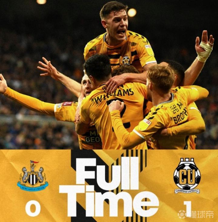 1-0淘汰纽卡,剑桥联队史首次足总杯客胜顶级联赛球队ETChalmers @懂球帝2022-01-09 01:44足总杯第三轮,剑桥联客场1-0击败纽卡,这是剑桥联队史首次足总杯客场击败顶级联赛球队,来自英甲的剑桥联凭借下半场艾恩赛德打入的全场唯一进球,1-0击败英超垫底球队纽卡。据统计,这是剑桥联队史首次在足总杯客场击败顶级联赛球队。这也是纽卡连续2个赛季在足总杯第三轮被淘汰。展开更多