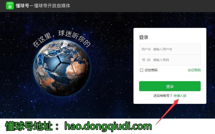 1.在电脑端,登录hao.dongqiudi.com地址,在登录页面点选“申请入驻”