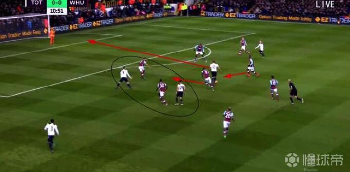 (图)热刺变阵,面对西汉姆,双前锋交叉换位,扯动防守