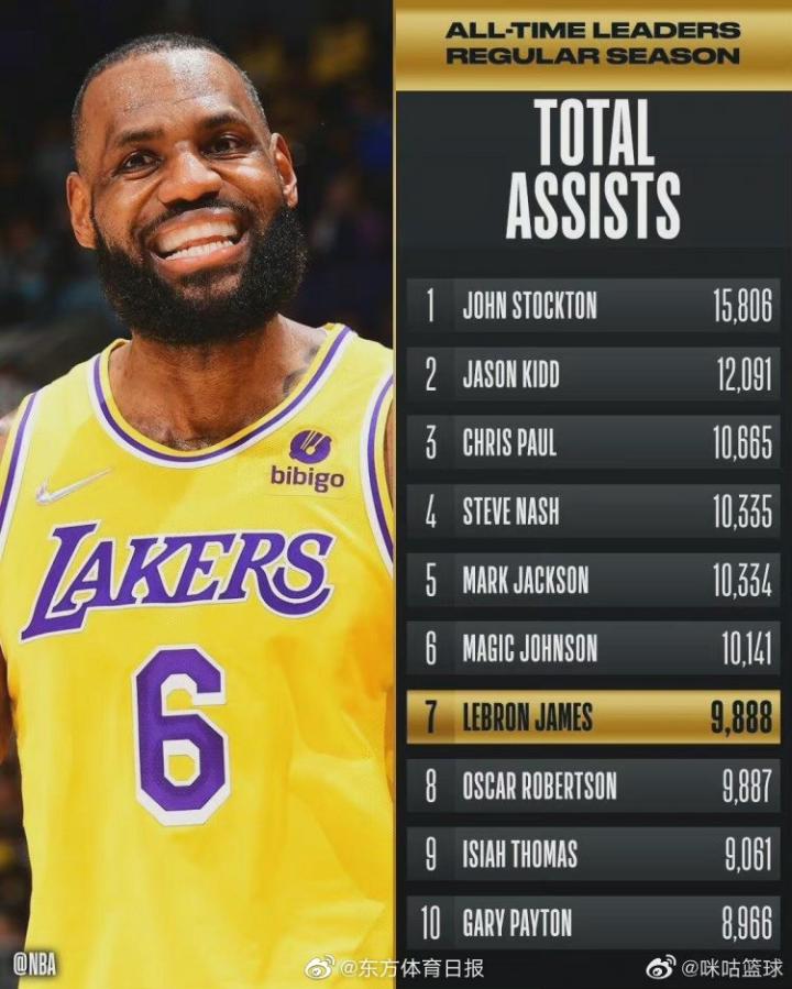 超越奥斯卡-罗伯特森,詹姆斯生涯助攻数升至历史第七位 篮板上沿的一枚硬币 篮板上沿的一枚硬币2022-01-10 13:48灰熊vs湖人常规赛,詹姆斯空砍35+9+7未能率队取胜。本场比赛詹姆斯超越了奥斯卡-罗伯特森,在NBA助攻榜上升至历史第七位。詹姆斯本场比赛出战33分钟,拿下35分9篮板7助攻,在NBA历史助攻榜上超越了“大O”奥斯卡-罗伯特森,以9888次助攻位列第七。NBA现役球员中排名最高的是保罗,他以10665次助攻排名第三。展开更多