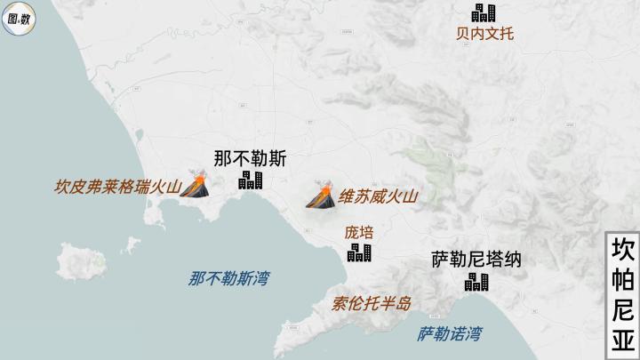 那不勒斯位于第勒尼安海那不勒斯湾的北岸,西面是坎皮佛莱格瑞火山,东面是维苏威火山,从古至今都受地震和火山的威胁,公元79年,维苏威火山突然喷发,岩浆在很短的时间就吞噬了罗马城市庞贝。