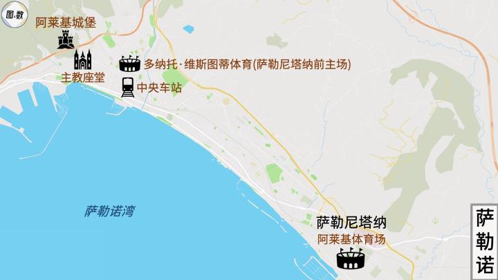 萨勒尼塔纳的阿莱基体育场位于萨勒诺东南部,有3万多个座位,体育场的名称是为了纪念贝内文托亲王国首位国王——阿莱基二世(Arechi II),当时萨勒诺归他统治,他的主要成就之一是把贝内文托公国(Duca di Benevento)提升为亲王国(Principe),贝内文托足球俱乐部上赛季还在意甲,因为成绩不佳降级了。