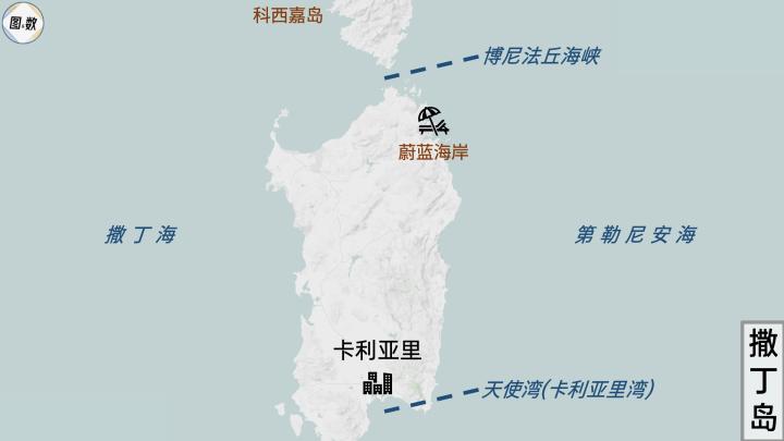 撒丁岛(Sardegna)是地中海第二大岛,仅次于西西里,其名称来源据信和沙丁鱼(Sardina)有关,不过中国明朝时期绘制的《坤舆万国全图》并没有把撒丁岛叫做“沙丁鱼岛”,而是“黄鱼岛”。