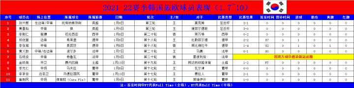 附:韩国球员旅欧表现(1.7~10)