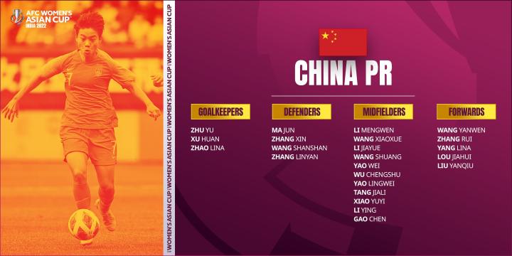 中国女足(亚足联名单中报名位置较乱,队员位置根据的中国女足官方)