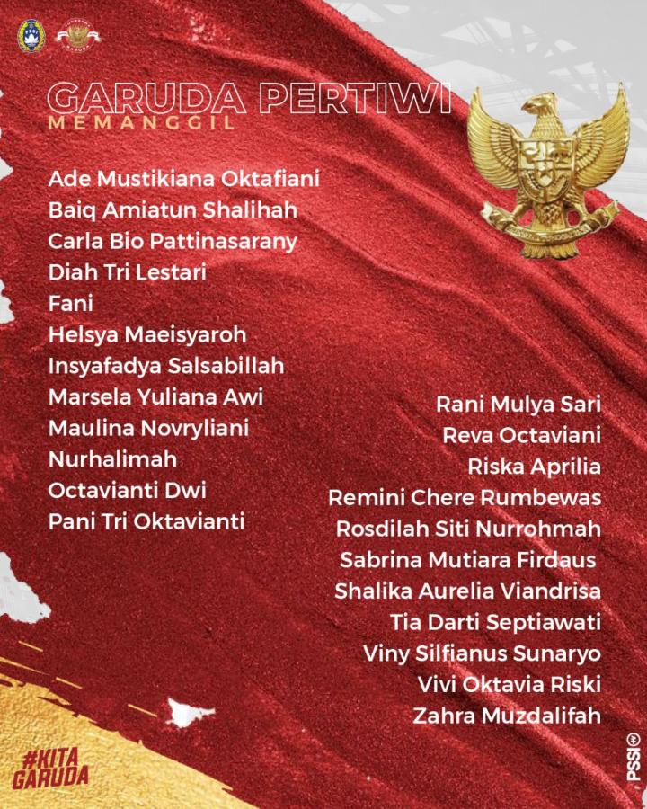 中场:努尔罗玛(西爪哇)、穆蒂亚拉(阿雷马)、奥克塔维安蒂(西爪哇)、努尔玛丽塔(佩西巴巴厘巴板)、诺夫里利亚尼(万丹)、拉妮-穆利阿萨里(佩西巴巴厘巴板)、迈斯雅罗(西爪哇)、西尔菲安努斯(雅加达)、奥克塔维娅妮(西爪哇)