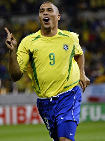 有非常多的理由支持我们将罗纳尔多提升到这个位置:他是世界杯历史上的最佳射手,他也是两届世界杯的得主。2000年,他因为膝盖的严重伤病休养了两年。当人们都不再看好罗纳尔多的时候,外星人却在亚洲上演了不可思议的演出。他在比赛中打入了8粒进球,成为了1970年以来单届世界杯进球最多的球员,也帮助桑巴军团拿到了第五座世界杯冠军。1998年,他也出现在了世界杯决赛的舞台上,但几个小时之前神秘的中毒迹象,成为了永远的谜团。虽然他的头球能力是为数不多的短板,但是他依旧在世界杯赛场上用头球的方式进过球。当罗纳尔多保持健康时,看他踢球就是一个享受。