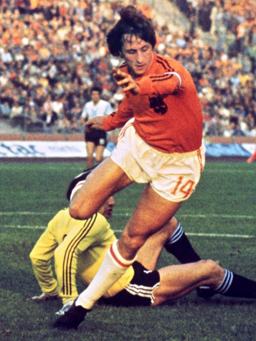 1974年,荷兰足球迎来了一个强盛的时代,而克鲁伊夫是这支球队的中场指挥官。他习惯于从后场得球之后奔向前场组织进攻,是橙衣军团绝对的进攻发动机。如果看过1974年世界杯决赛,就知道克鲁伊夫为何而伟大。他在比赛中不断的呼喊,指挥自己的队友投入进攻。克鲁伊夫也是傲慢和固执的球员——他在比赛中坚持只穿橙色的球衣,拒绝身穿印有阿迪达斯的球衣,只因为他是彪马的代言人。克鲁伊夫很长一段时间被人们当做足球艺术家,在不同的国度里,他都成为了超级偶像。