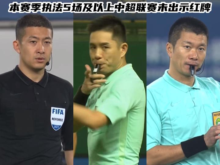 红牌方面,在本赛季中超执哨大于等于5场的共计14名裁判员中,张雷、顾春含以及牛明辉三人没有出示过红牌。