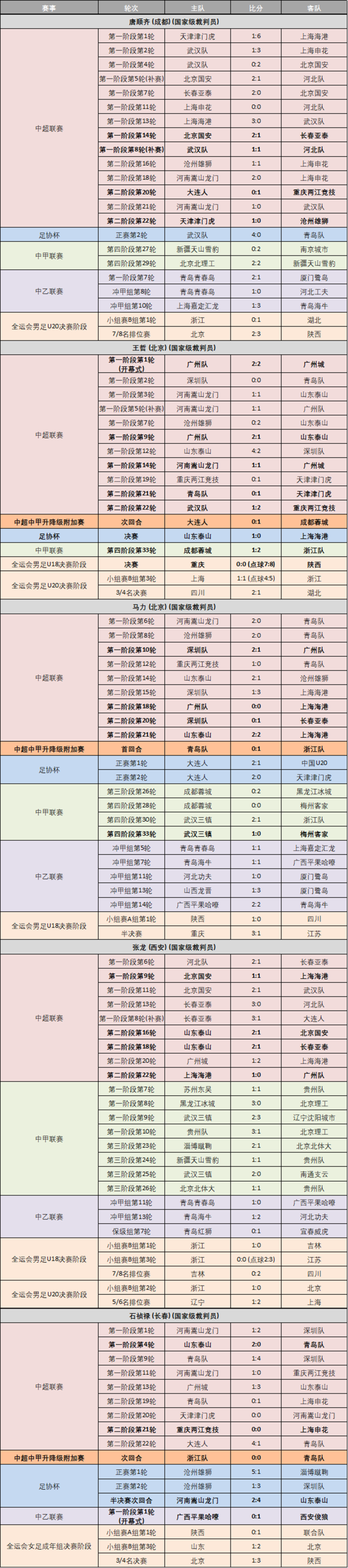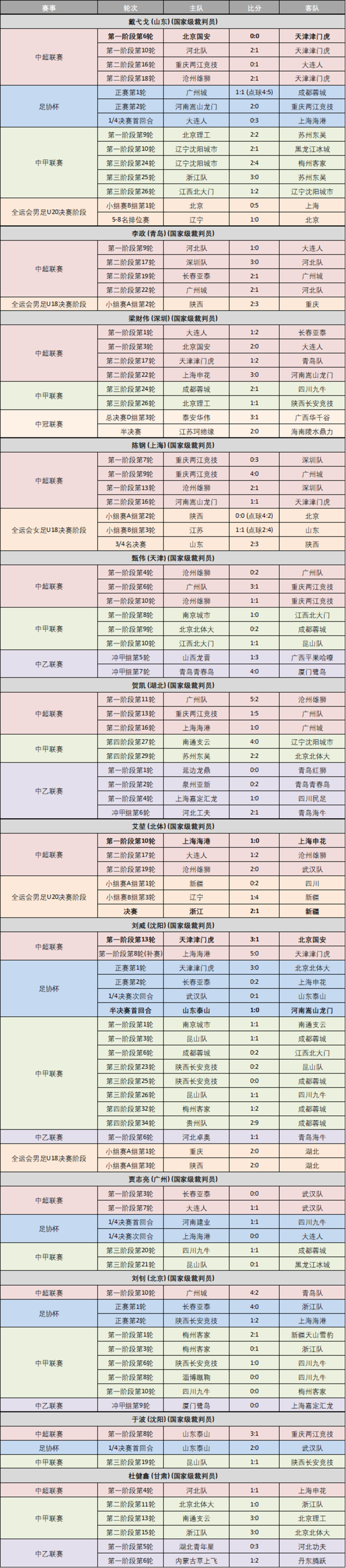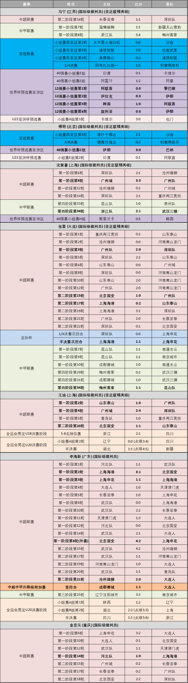 附:2021赛季所有中超联赛列名裁判员各项赛事执法场次统计