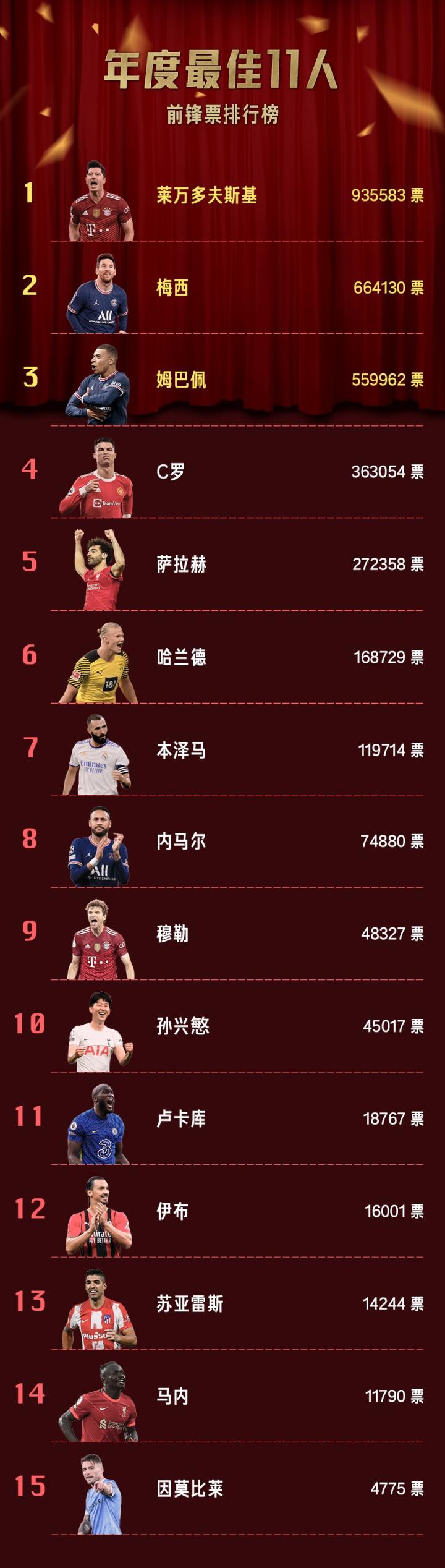 懂球帝2021年度最佳11人:莱万搭档梅西姆巴佩,蓝军3人入选
