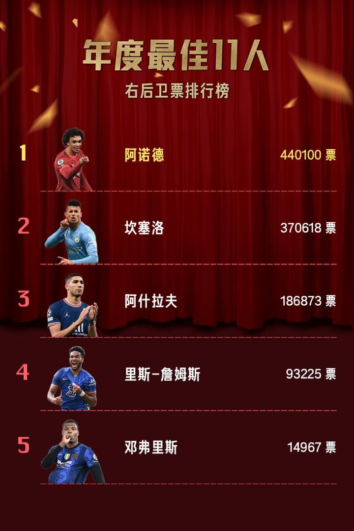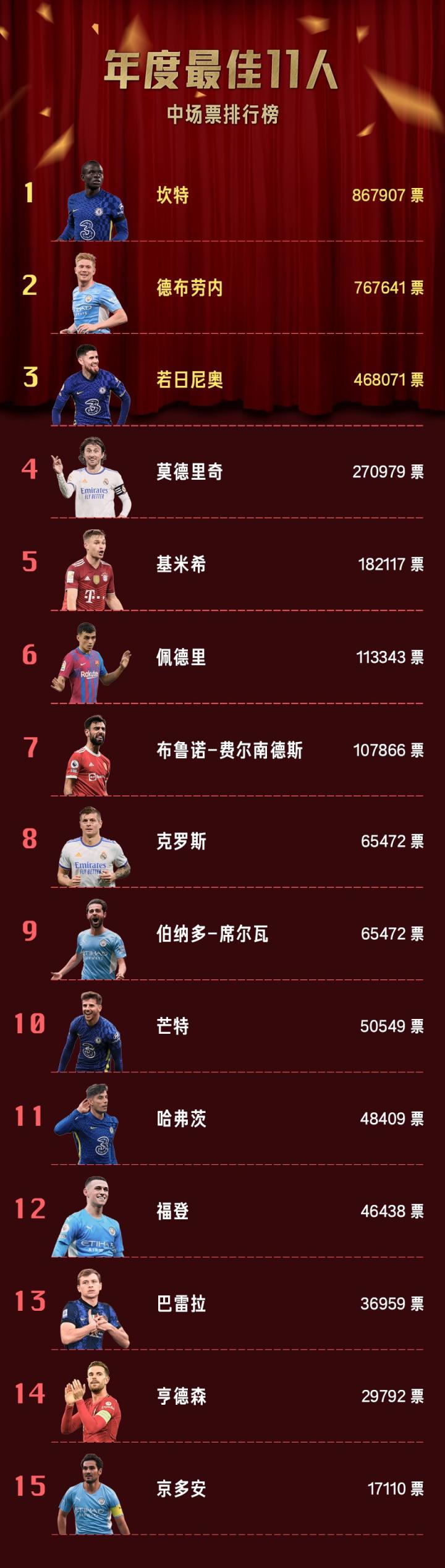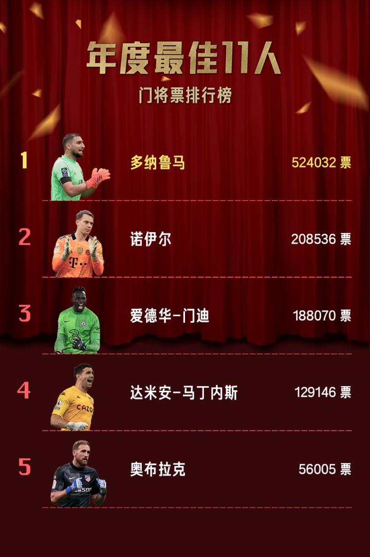 北京时间2022年1月15日17:00,懂球帝&All Football 2021年度最佳11人评选结束,由球迷们选出的最佳阵容正式出炉!