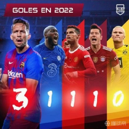 2022年的卢克-德容打入3球,比卢卡库,C罗,...